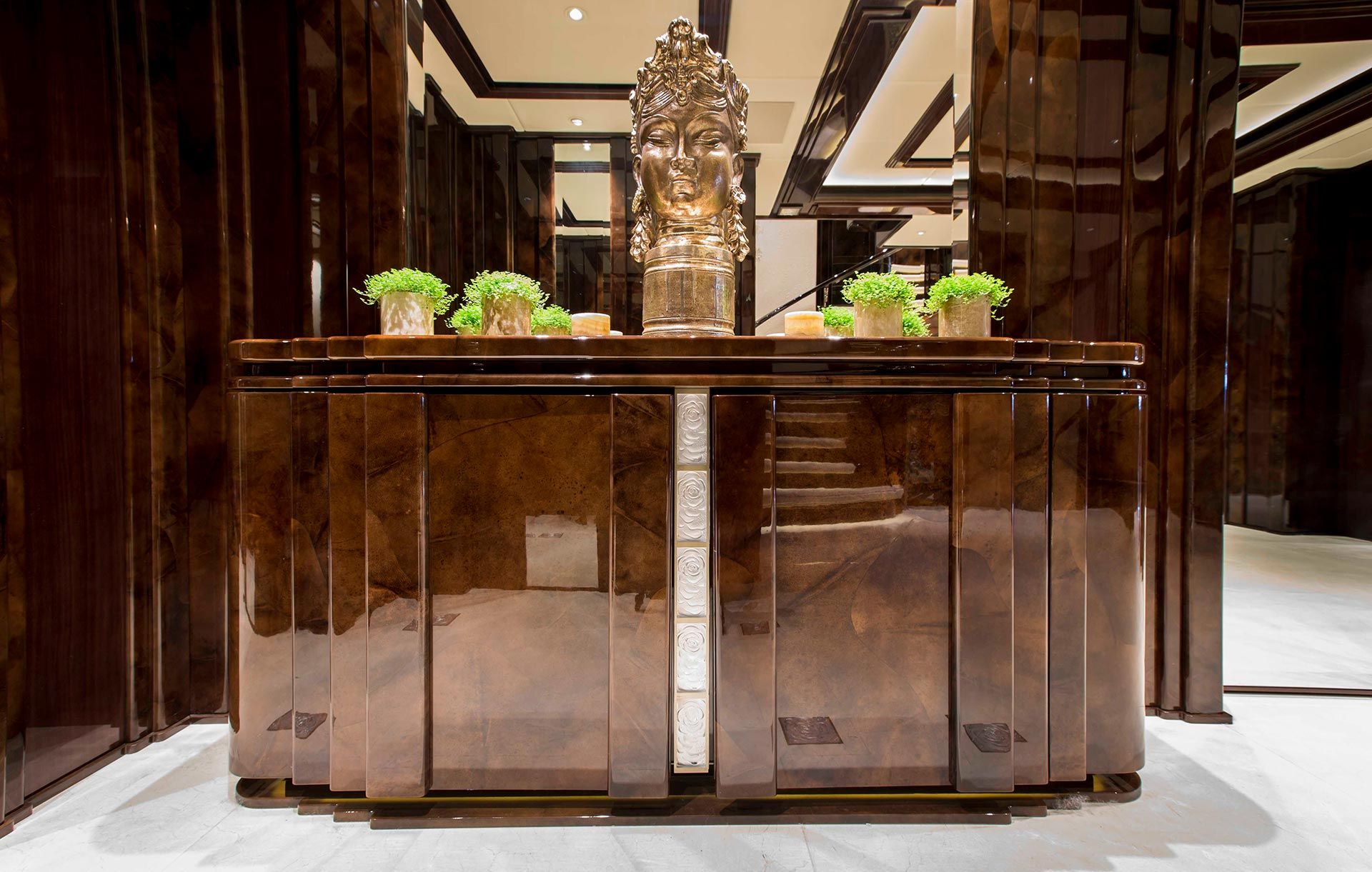 Yachtline 1618 realizza una sintesi tra il progetto dell’architetto, lo spazio disponibile a bordo, e l’impiantistica prevista dal cantiere, individuando soluzioni coerenti con il progetto che massimizzino la qualità dell’arredo.