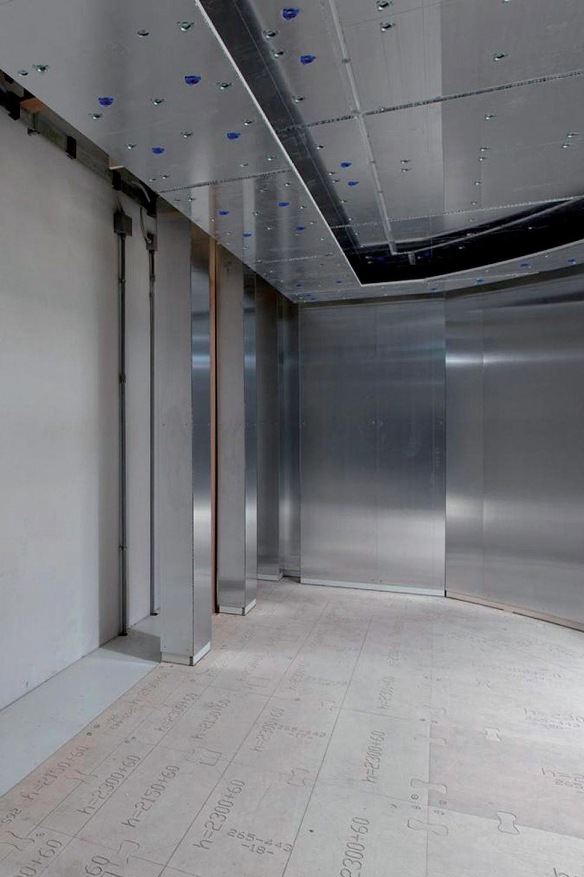 Il volume disponibile è definito con dime a terra che riportano impresso il progetto stampato, i volumi dei mobili, degli impianti: informazioni che accompagnano la costruzione della nave, e costituiscono un ulteriore guida per le maestranze a bordo.